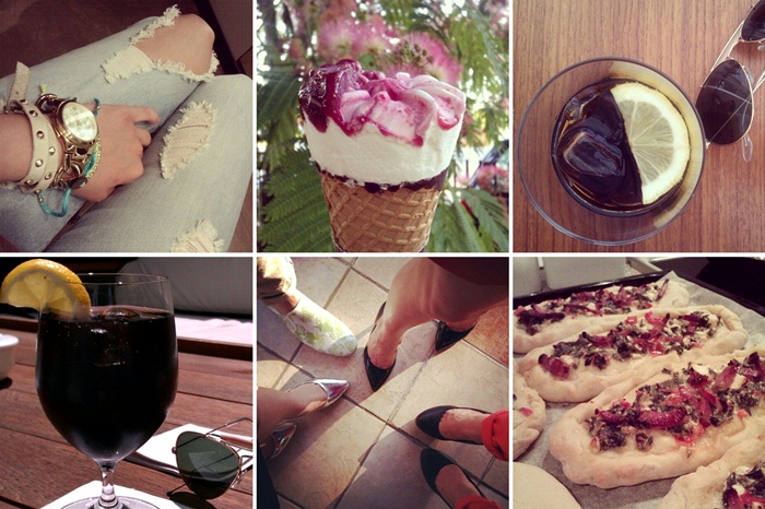 6. collage - Ripped jeans and arm swag; strawberry ice cream cone; Coca-cola addict;